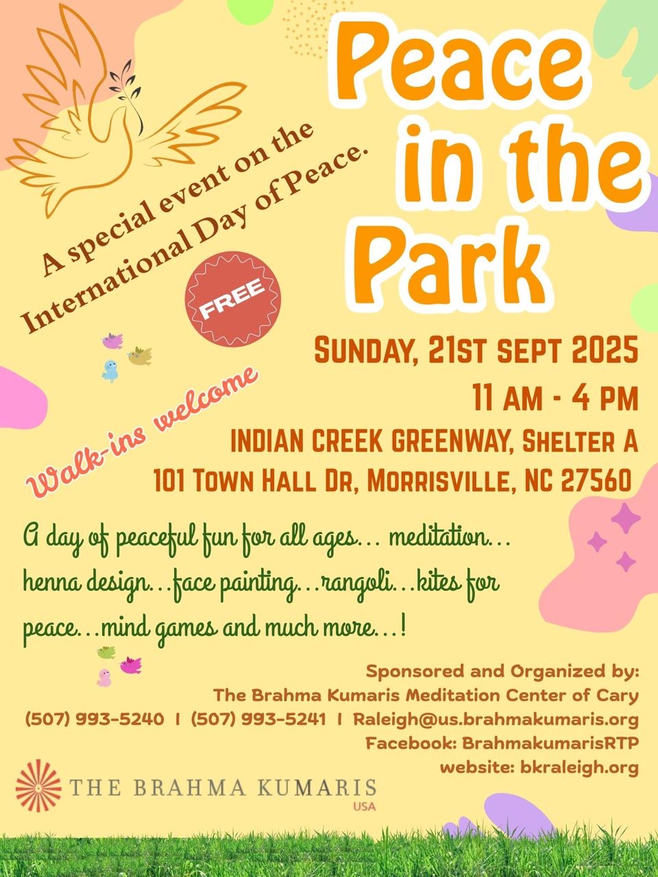 It will be a day of peaceful fun for all ages… meditation… henna design…face painting…rangoli…kites for peace…mind games and much more…!