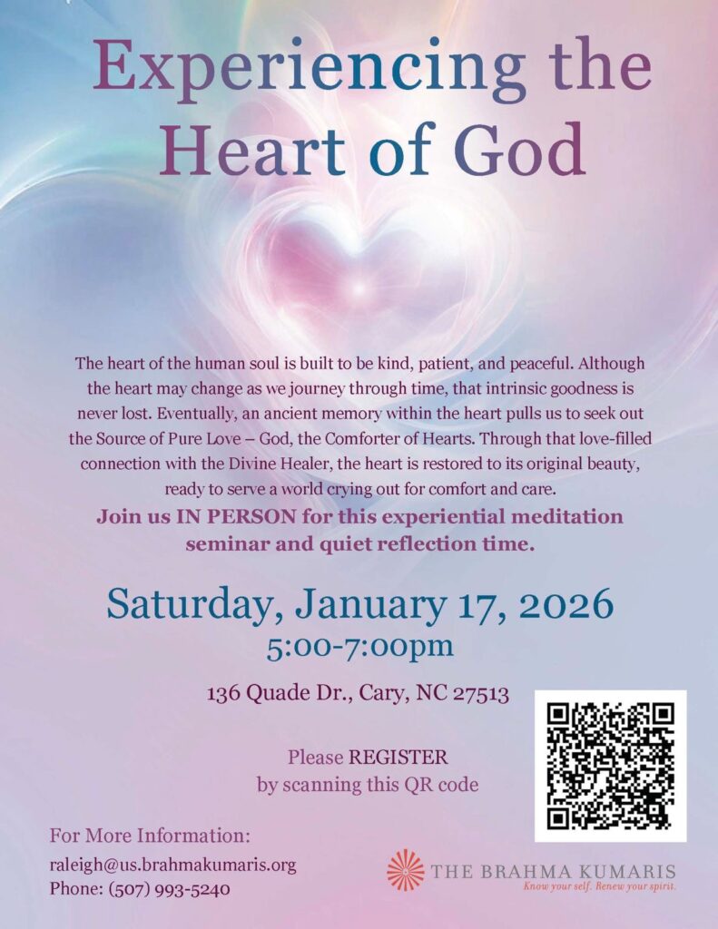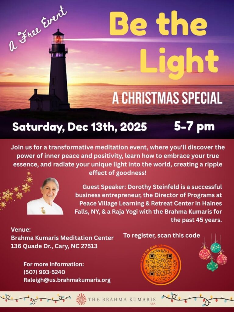 Begin your journey with the Raja Yoga Course—simple, practical, and life-changing. Learn to experience inner peace, build clarity of mind, and discover true spiritual strength. Free and open to all—your path to a calmer, happier you starts here.