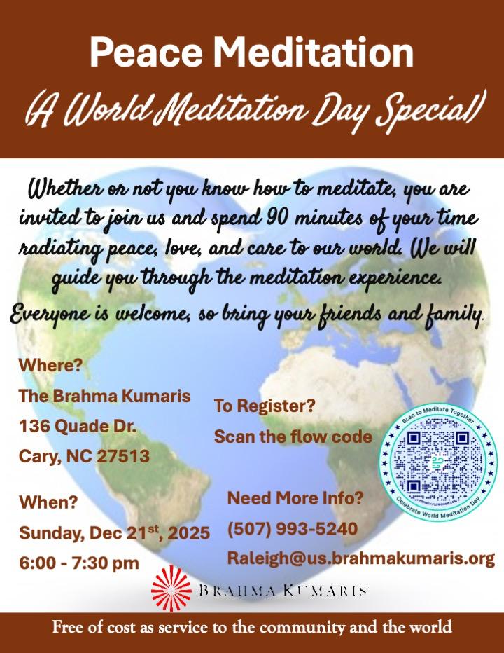 Whether or not you know how to meditate, you are invited to join us and spend 90 minutes of your time rediating peace, love, and care to our world.